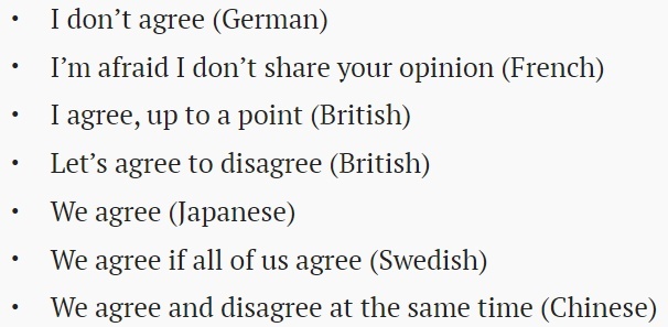 [6]How different cultures say “I disagree”. (2013). Retrieved 13 February 2023, from https://qz.com/117519/how-different-cultures-say-i-disagree