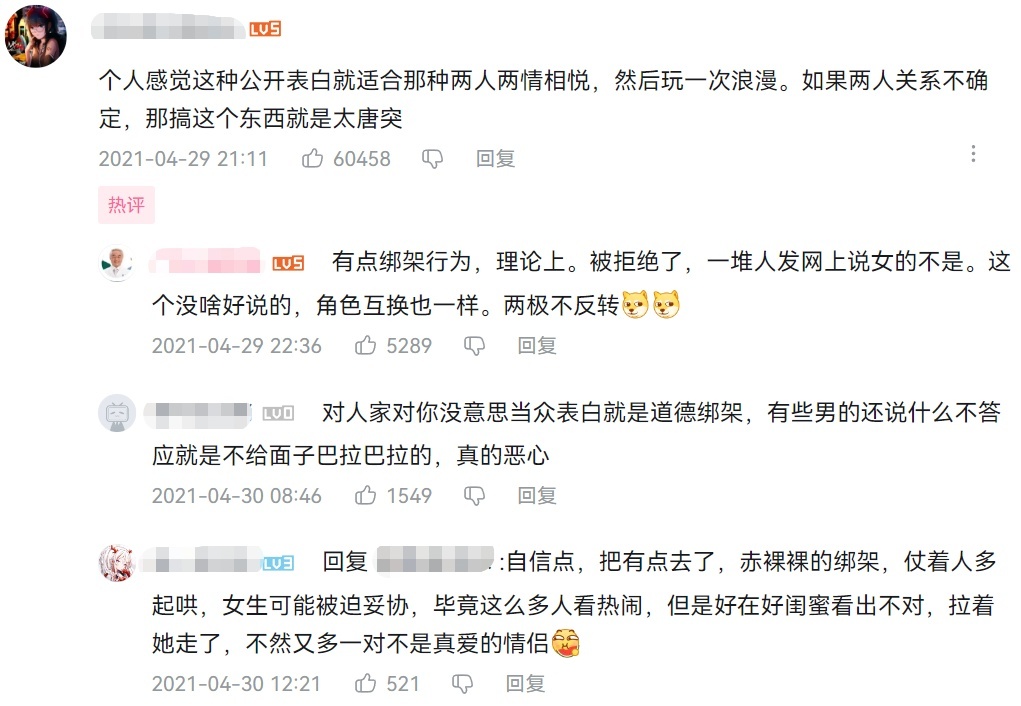 片面当众表白类视频的主流褒贬区 | Bilibili@快看视频video