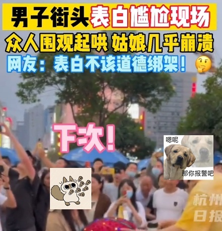 2025年10月,在深圳梧桐山上就发生了一场“扯旗放炮”确就地表白。在一生东谈主的围不雅下,女生全程坐地捂脸,并拒却了男生的示爱。
