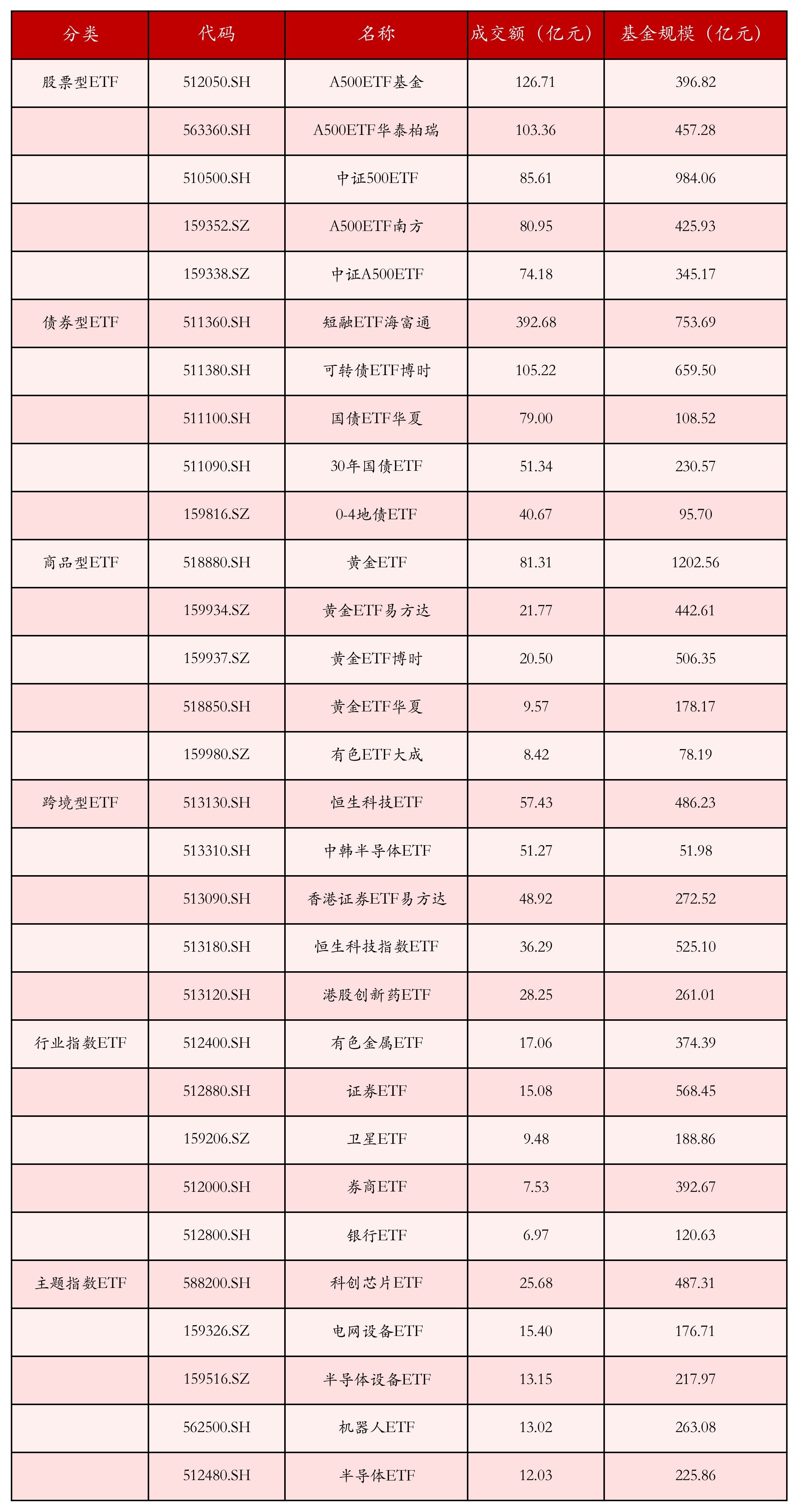 3.不同类别ETF成交情况