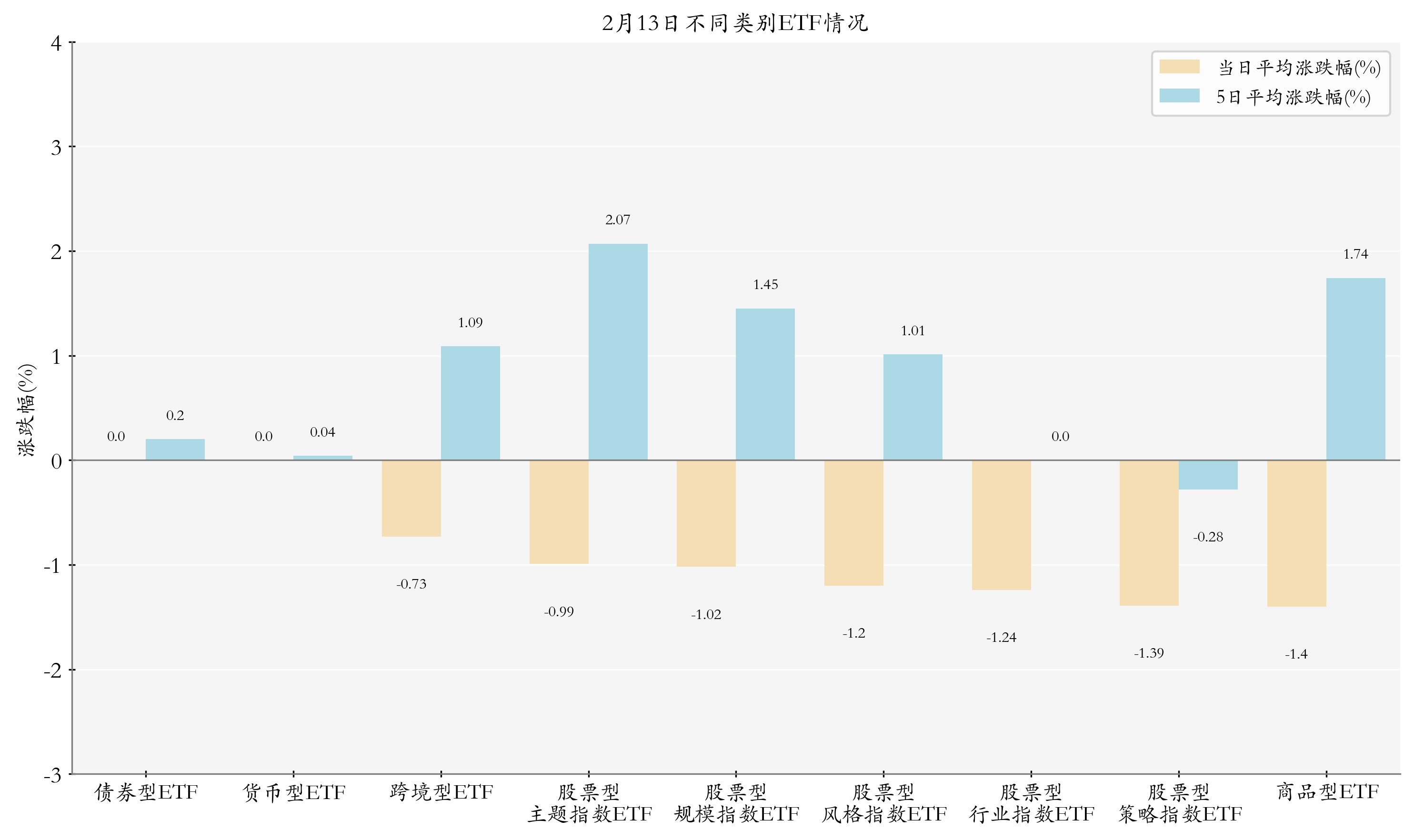 证据ETF基金的规模和涨跌幅计较得出不同分类情况下各种ETF基金的平均涨跌幅。