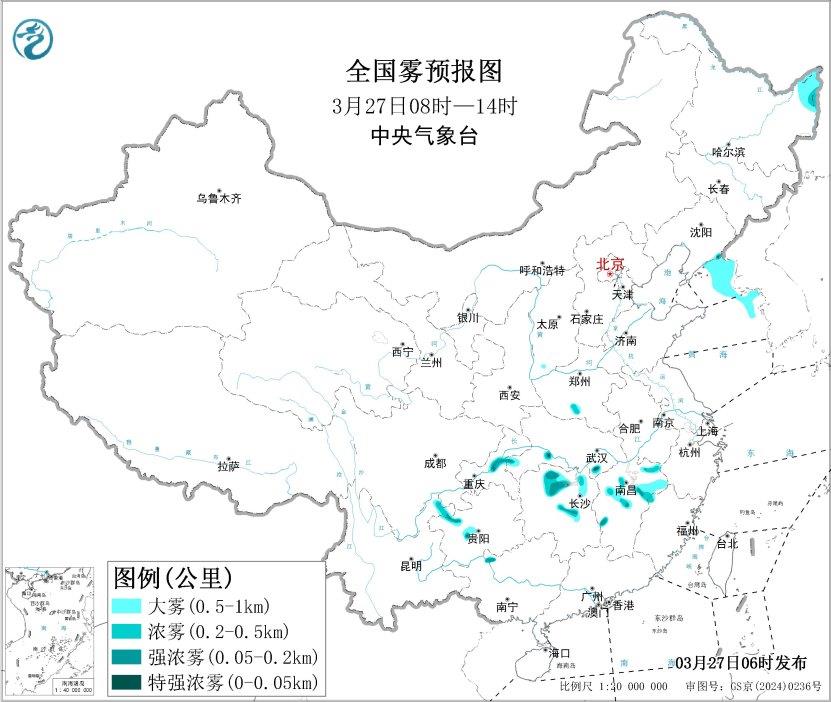 中央气候台今天(3月27日)06时不息发布大雾黄色预警:预测,27日上昼,黄海北部和中东部海域、辽东半岛东部沿岸海域将有能见度不及1公里的大雾。此外,27日黎明至上昼,湖南北部、江西北部、重庆中部、贵州西部等地的部分地区有大雾,局地有能见度不及200米的强浓雾。