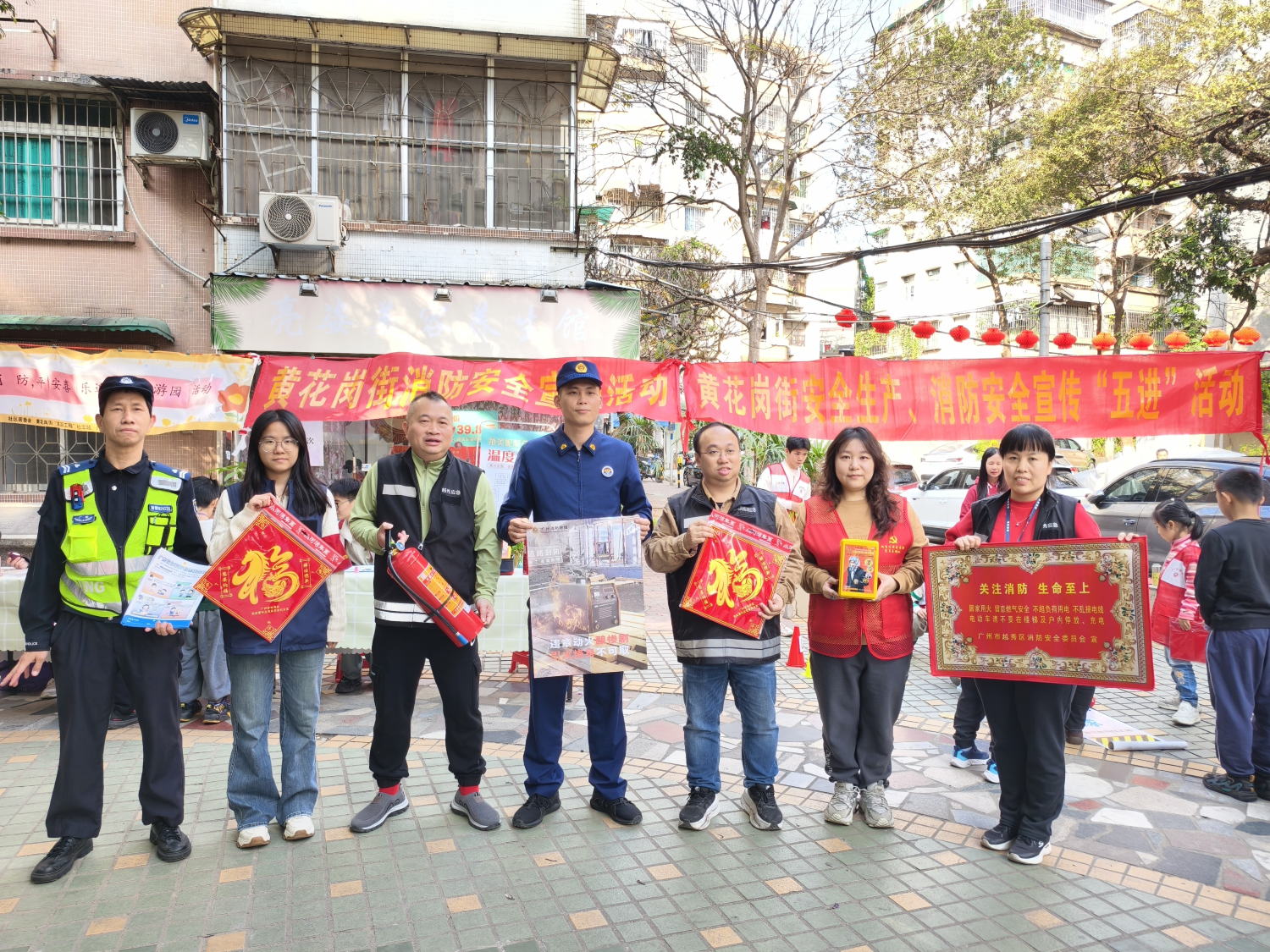 2月11日下昼,越秀区黄花岗街科苑社区文化广场东谈主头攒动,一场春节前消防安全“五进”宣传举止在此举行。本次举止由黄花岗街谈空洞行政公法队队长黄锷带队,组织济急办、社区居委会、中山一王人消防站及派出所共同开展,在岁末岁首要津节点,以公共雅俗共赏的神态普及消防安全常识,筑牢辖内安全防地,营造平安稳和的节日氛围。