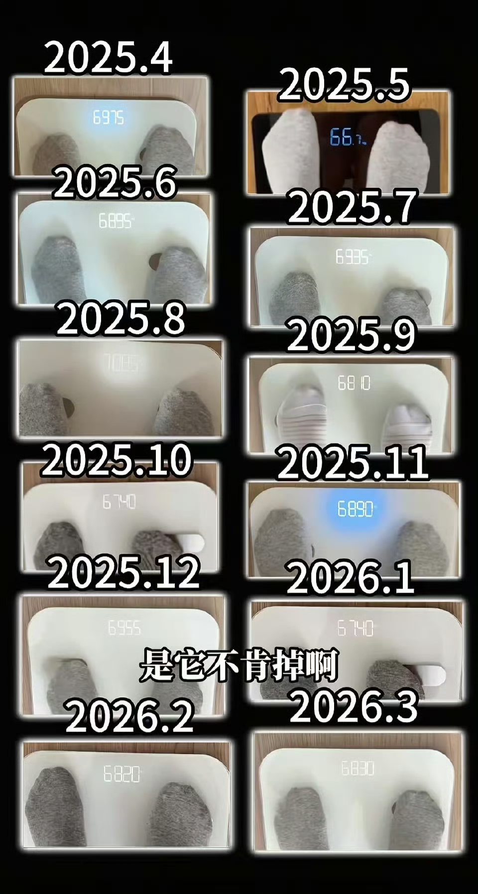近日,艺东谈主颜如晶在酬酢平台发布视频,含泪向粉丝讲演我方畴昔一年的“减肥战绩”:从2025年4月的69.75公斤,到2026年3月的68.3公斤,整整一年,体重仅着落1.45公斤(2.9斤)。