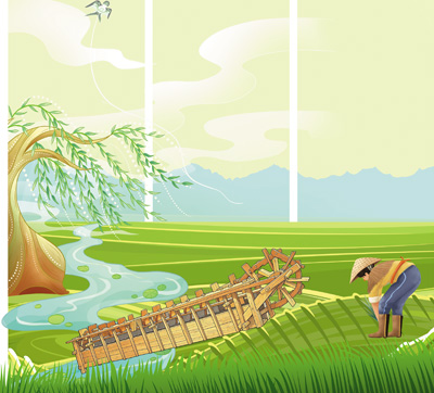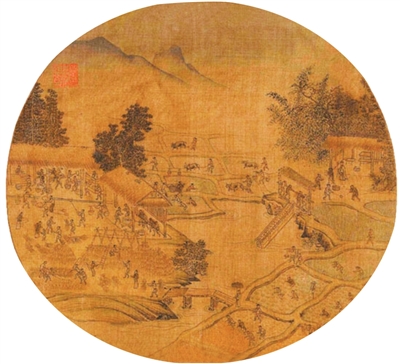 宋代《耕获图》中的脚踏翻车。贵府图片