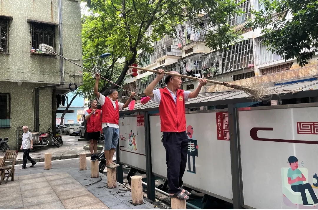江门鹤山市沙坪街谈桂林社区志愿楼长开展清洁家园活动。江门市委组织部 供图