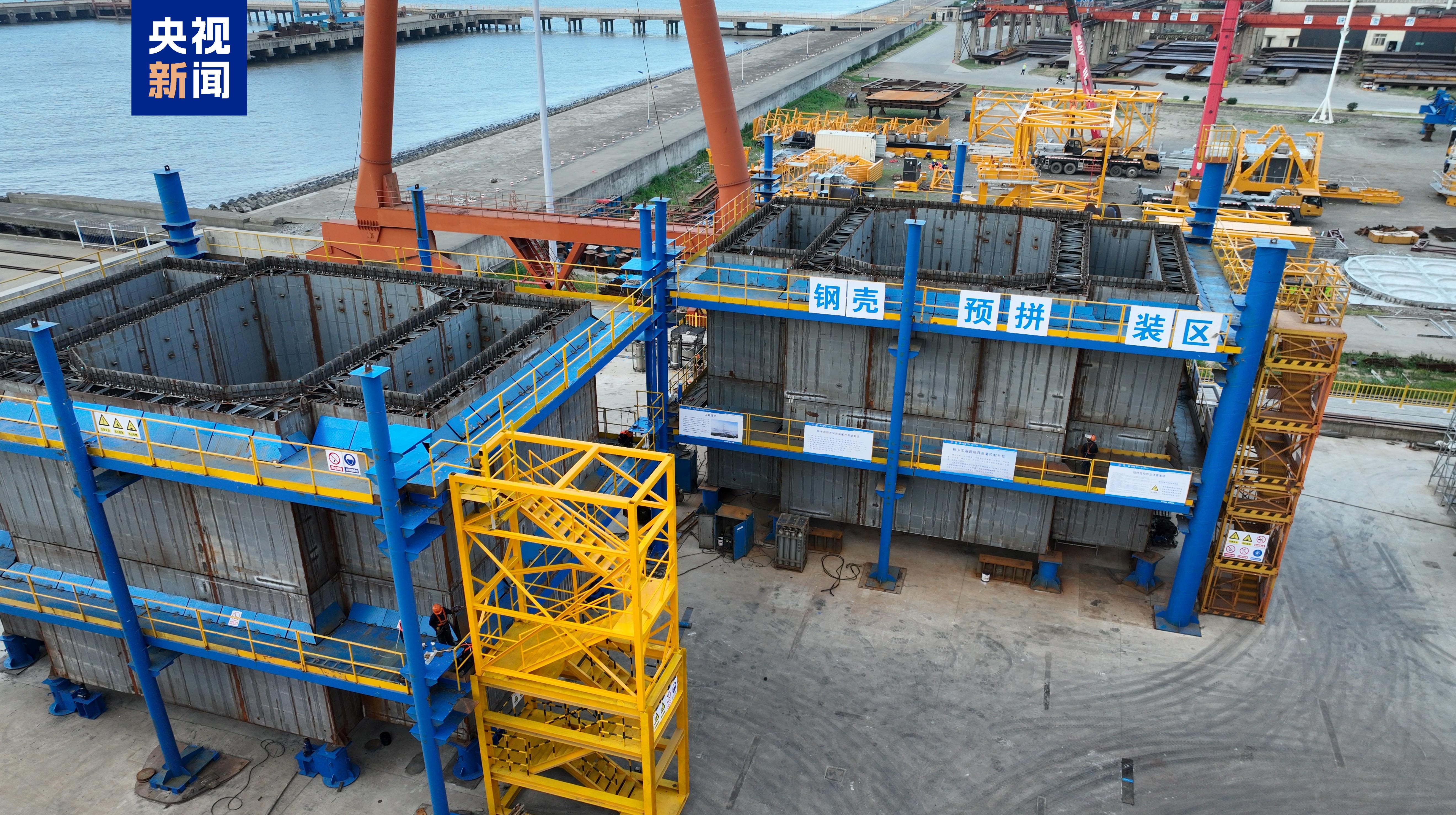 △狮子洋大桥钢壳节段在制造厂内进行预组装