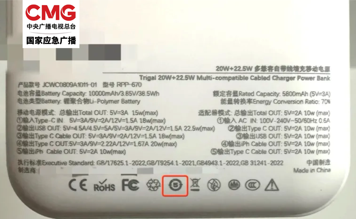 在充电宝的一侧平常有一个可轮回使用年限象征,若超期使用,易致充电宝容量裁汰、发烧时时。