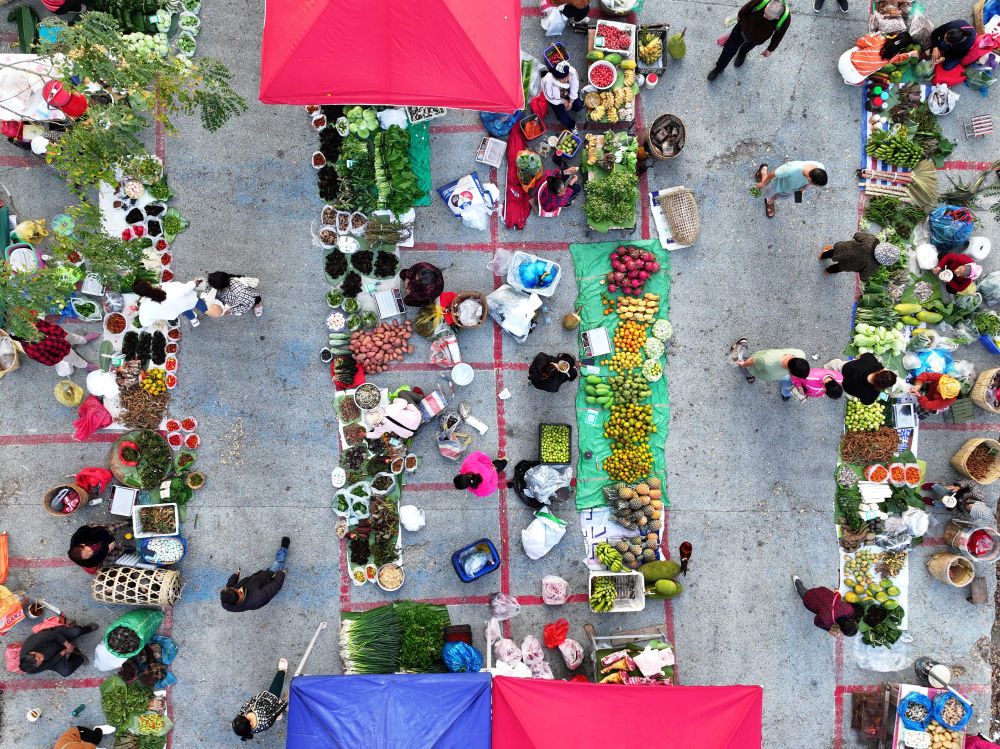 3月1日,东谈主们在云南省西双版纳傣族自治州景洪市曼外村“山货集市”采购(无东谈主机像片)。