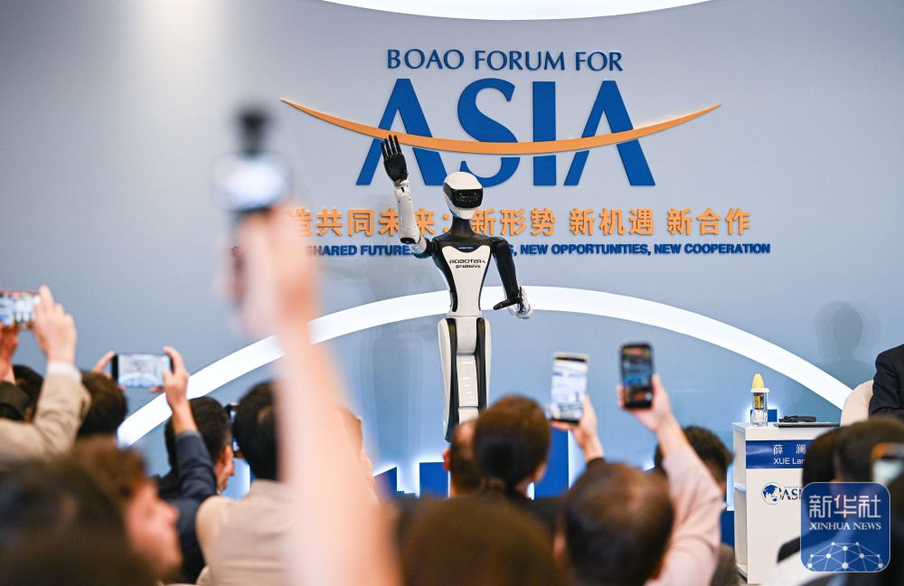 ↑ 3月25日在博鳌亚洲论坛“东说念主形机器东说念主的进阶与飞跃”分论坛上拍摄的机器东说念主。