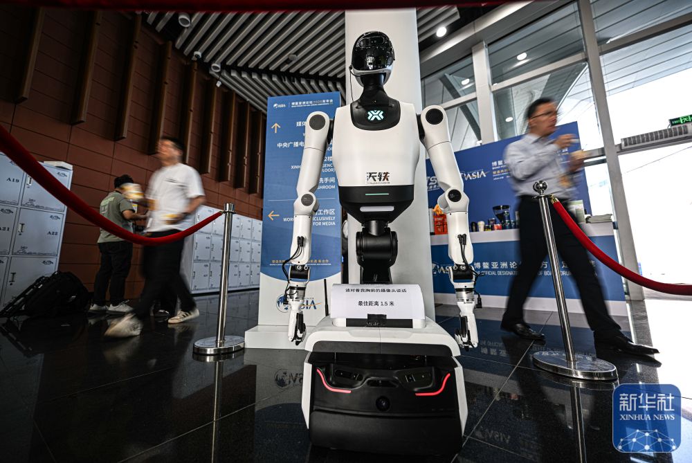 ↑ 3月24日在博鳌亚洲论坛新闻中心拍摄的机器东说念主“天轶”。
